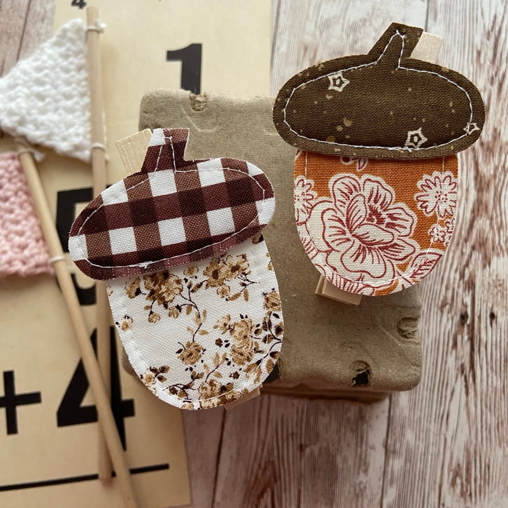 This listing is for a single, quilted “acorn” clothes pin clip. Please use the drop box to select.