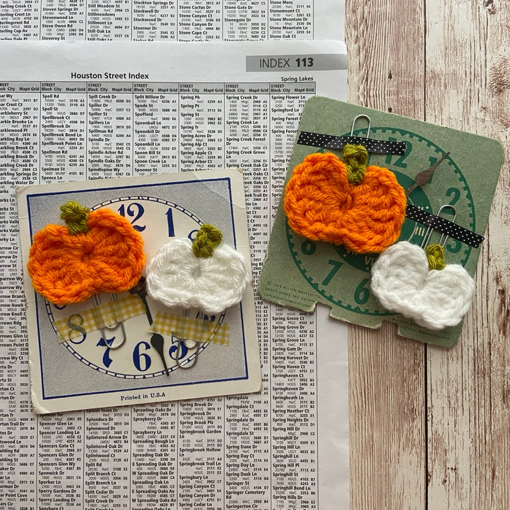 2. “Classic Pumpkins” crocheted planner clips set of 2 (slips onto page)
