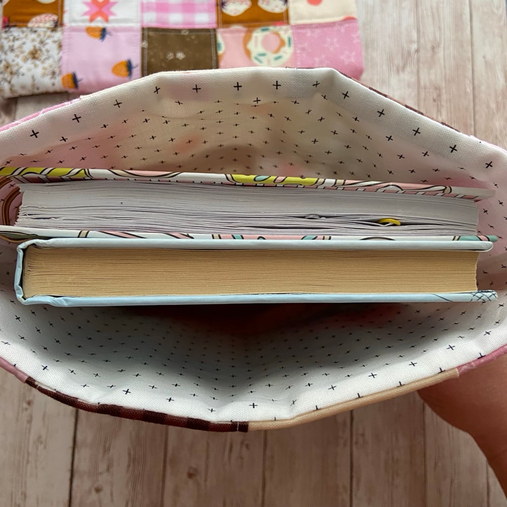 "Pink & Brown” Shorter/Wider Patchwork Quilted Book Sleeve