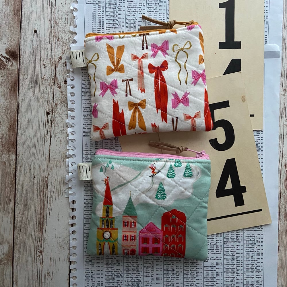 This listing is for one mini quilted zipper bag in "sleigh bells ring” or “bows". Please use the drop box to select.